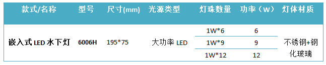 產品全部采用LED光源灌膠、不銹鋼電解及防腐蝕處理等技術,合理光學設計,亮度整體性好,防護等級達到IP68標準,符合水下安裝使用指標。