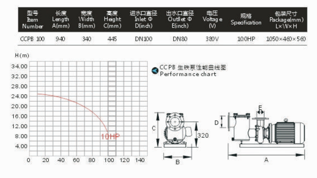CCBP100 | 940 | 340 | 445 | 4 | 3 | 380V | 10.0HP | 1050x440x560 |
