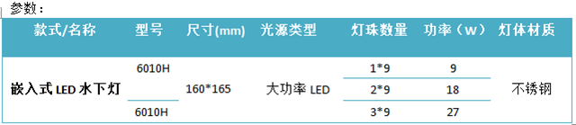 產(chǎn)品全部采用LED光源灌膠、不銹鋼電解及防腐蝕處理等技術(shù),合理光學(xué)設(shè)計(jì),亮度整體性好,防護(hù)等級(jí)達(dá)到IP68標(biāo)準(zhǔn),符合水下安裝使用指標(biāo)。
