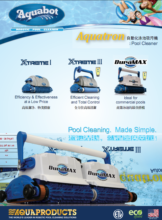 Aquabot經(jīng)過三十年的不斷創(chuàng)新,在今天成為游泳池市場(chǎng)中的知名經(jīng)典品牌之一;安全可靠的家庭設(shè)計(jì),以滿足任何清潔機(jī)器人住宅游泳池的需求,不論其大小或形狀。