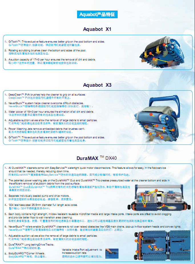 Aquabot全自動(dòng)泳池吸污機(jī)是美國AquaGroup公司的經(jīng)典品牌之一;廣州搏瀾泳池設(shè)備有限公司代理的進(jìn)口泳池設(shè)備。