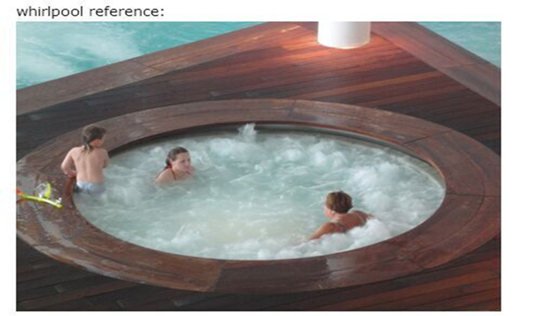 酒店設(shè)有室內(nèi)恒溫泳池及SPA水療池、室外無邊際泳池以及兒童泳池,游泳池設(shè)計采用逆流式循環(huán)方式,由池底注水到泳池,泳池水通過池壁溢水溝和回水管道流入均衡水箱,經(jīng)過過濾、殺菌消毒處理,再注入泳池。